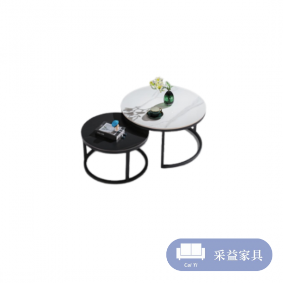 雙色岩板雙圓茶几