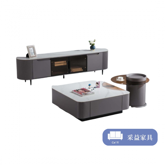 亮光雪山岩板/烤漆櫃體/茶色玻璃
