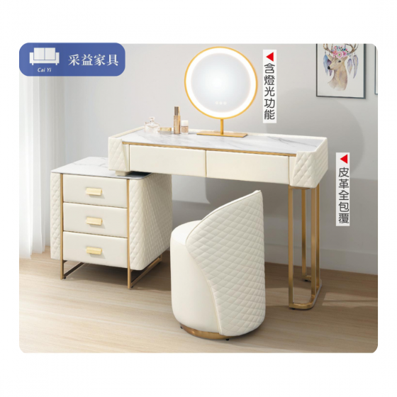 烤漆櫃體+皮革包覆/岩板桌面/