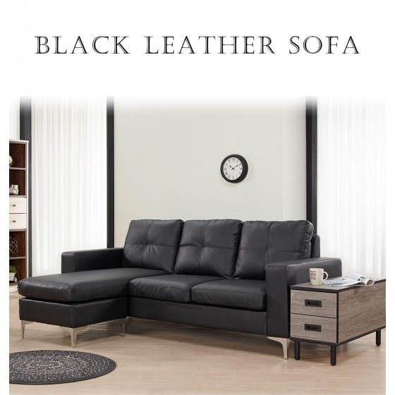 馬卡斯L型黑皮沙發